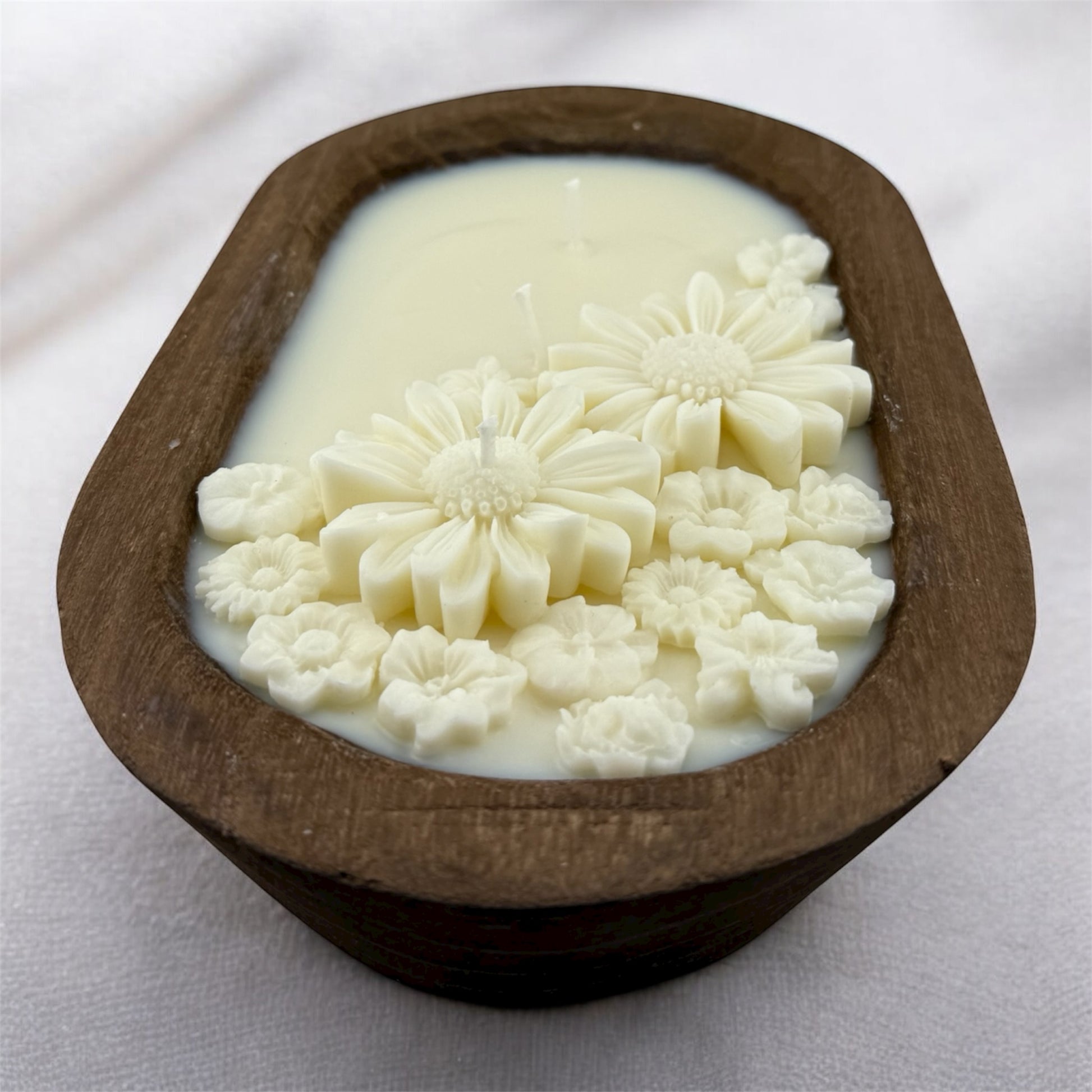 Fill your home with the warm, comforting aroma of vanilla with our Rustic Vanilla Floral Dough Bowl Candle. Hand-poured into a natural wooden bowl and topped with delicately sculpted flowers, this candle is as charming as it is fragrant. Its soothing vanilla scent creates a cozy, inviting atmosphere, while the reusable wooden bowl makes it a sustainable and stylish décor piece long after the candle is gone.